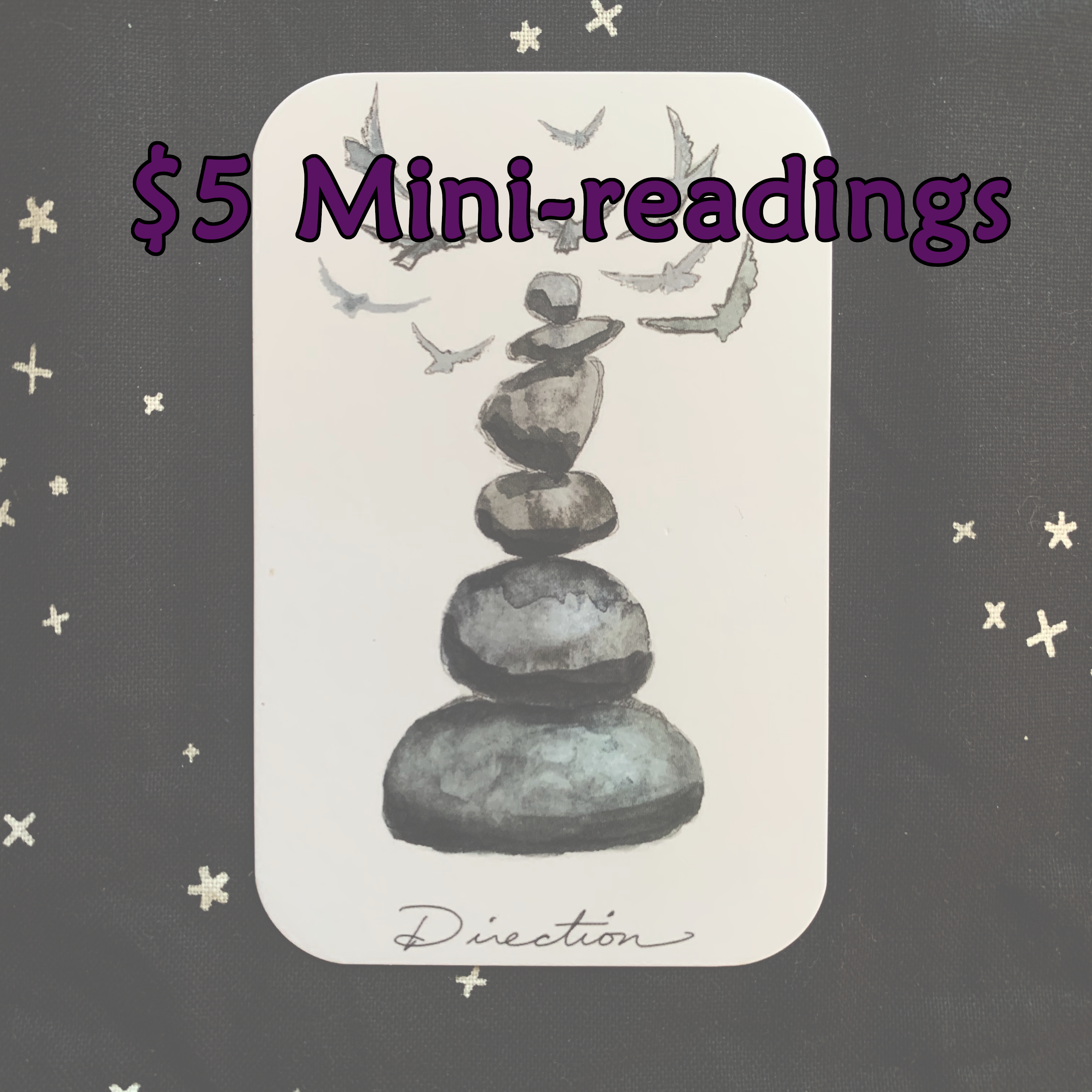 I’ve recently added a new service you can select from the menu of services I offer. I’m happy to announce the arrival of 1-Card Mini-Readings. At the time of writing, they are $5, and so are my most economical offering.